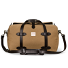 With a 34-liter capacity. our 48 Hour Duffle Bag is ideally sized for a long weekend. It is made from our waxed Tin Cloth. the iconic canvas that’s withstood the elements in rain-soaked backlands for a century. The main compartment is fully lined with unwaxed cotton to protect clothing and gear. The Bridle Leather handles are thick and strong for lasting service. Exterior zippered pockets keep quick-access essentials close at hand. The trolley strap on the back slides over the handles of rolling luggage for ease in navigating airport security. This bag meets airline carry-on size requirements. but if you do check it. the shoulder strap detaches to avoid snagging.
