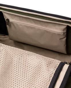 Padded. contoured shoulder straps with an adjustable sternum strap enable hands-free carry. They are removable to prevent snagging during transport. The full length of the main compartment’s U-shaped zipper is covered by an extended storm guard for added water protection. The endcap grab handles and main carry handles are made from strong. durable nylon webbing. An interior zip-close hanging pocket and exterior snap-flapped pocket keep small essentials organized. and the entire top opening panel is covered with a zippered mesh pocket.