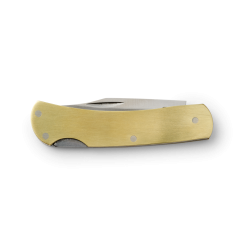 Built entirely in the USA. our Brass Lockback Pocket Knife is made with a thin handle and short overall length for discreet carry in any pocket. The hollow-ground. high-carbon blade is corrosion-resistant. easy to sharpen. and holds its edge well. Brass handle scales will develop a unique patina over time. Finished with a lockback so it can easily and safely perform any small cutting task. 2.25-inch blade length. with a 3-inch closed length.