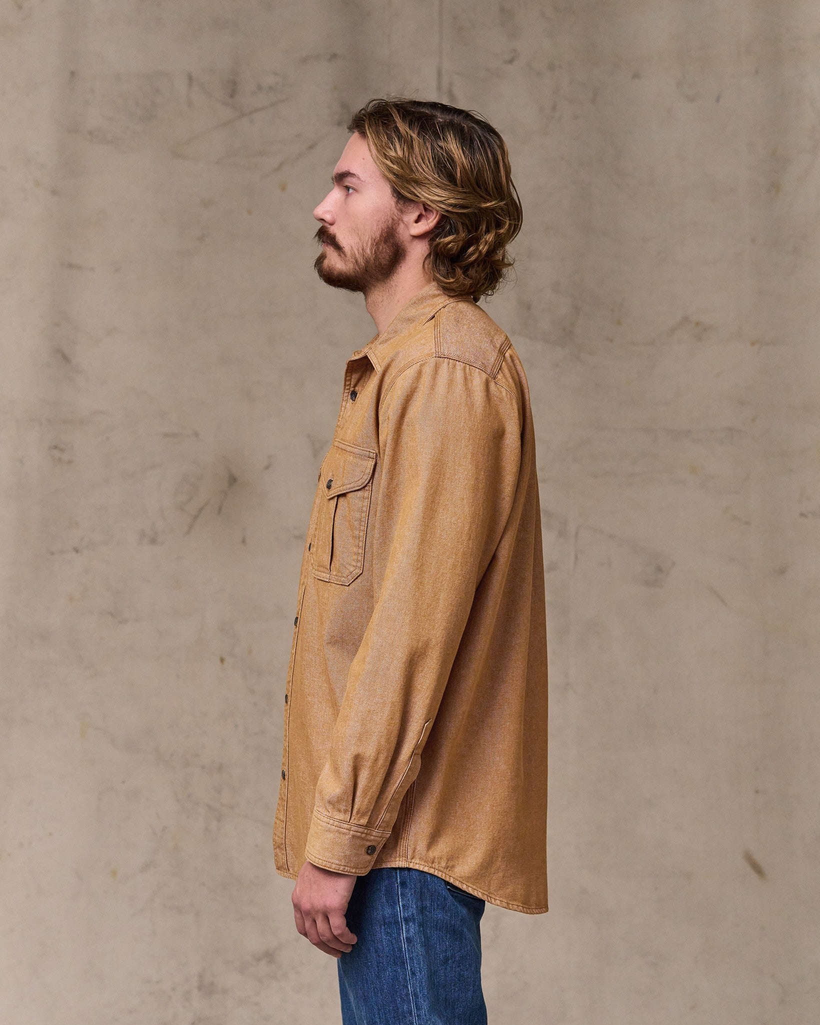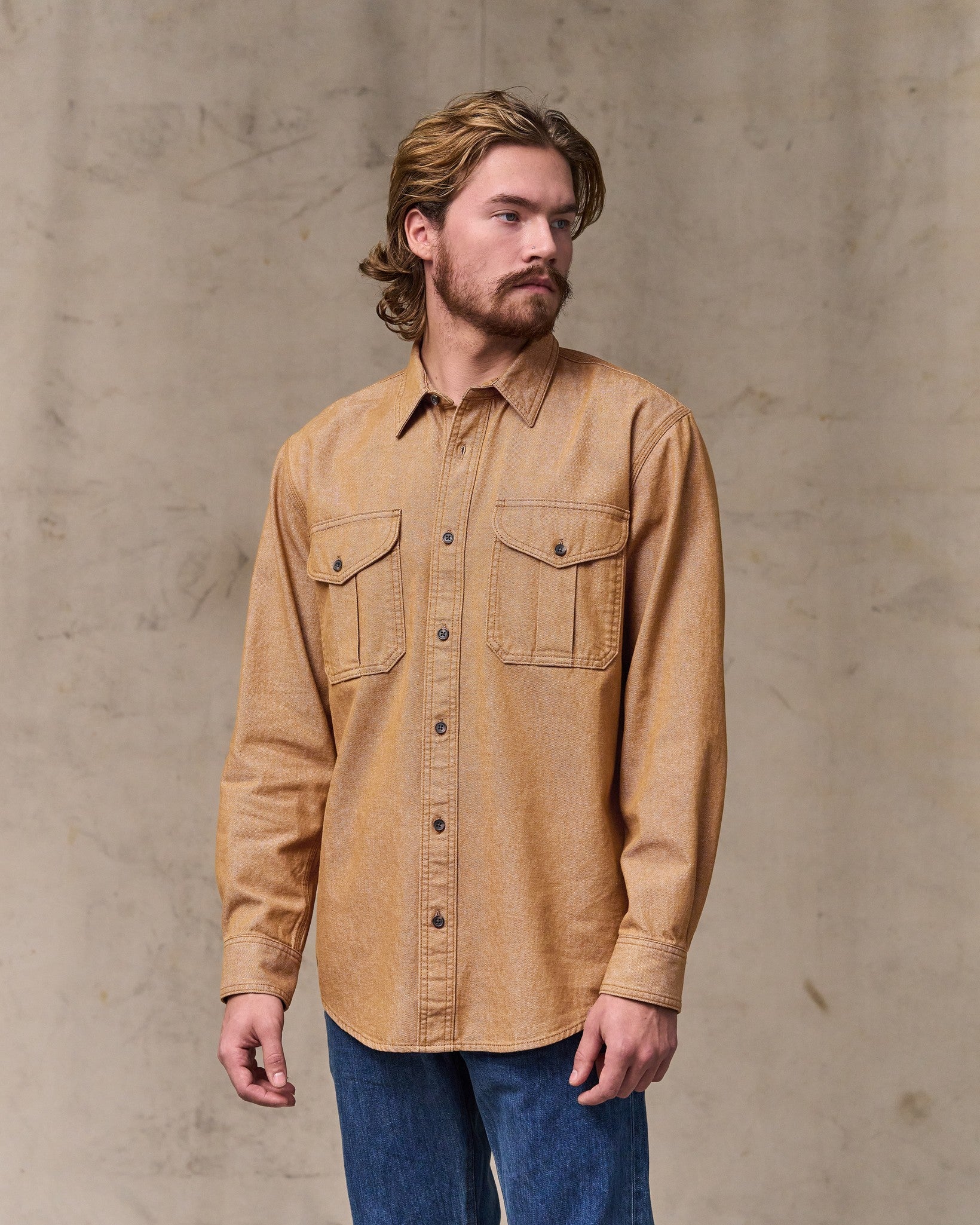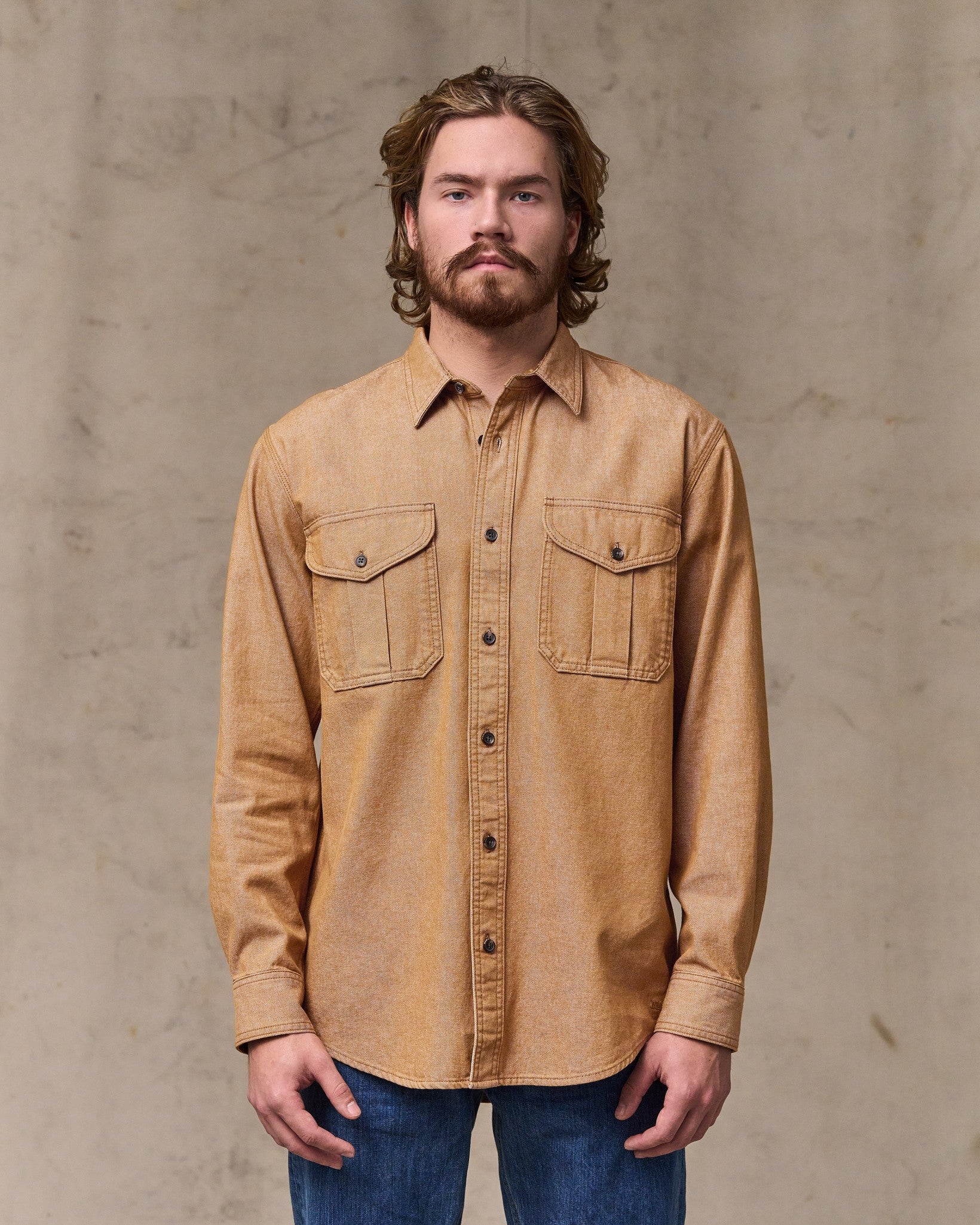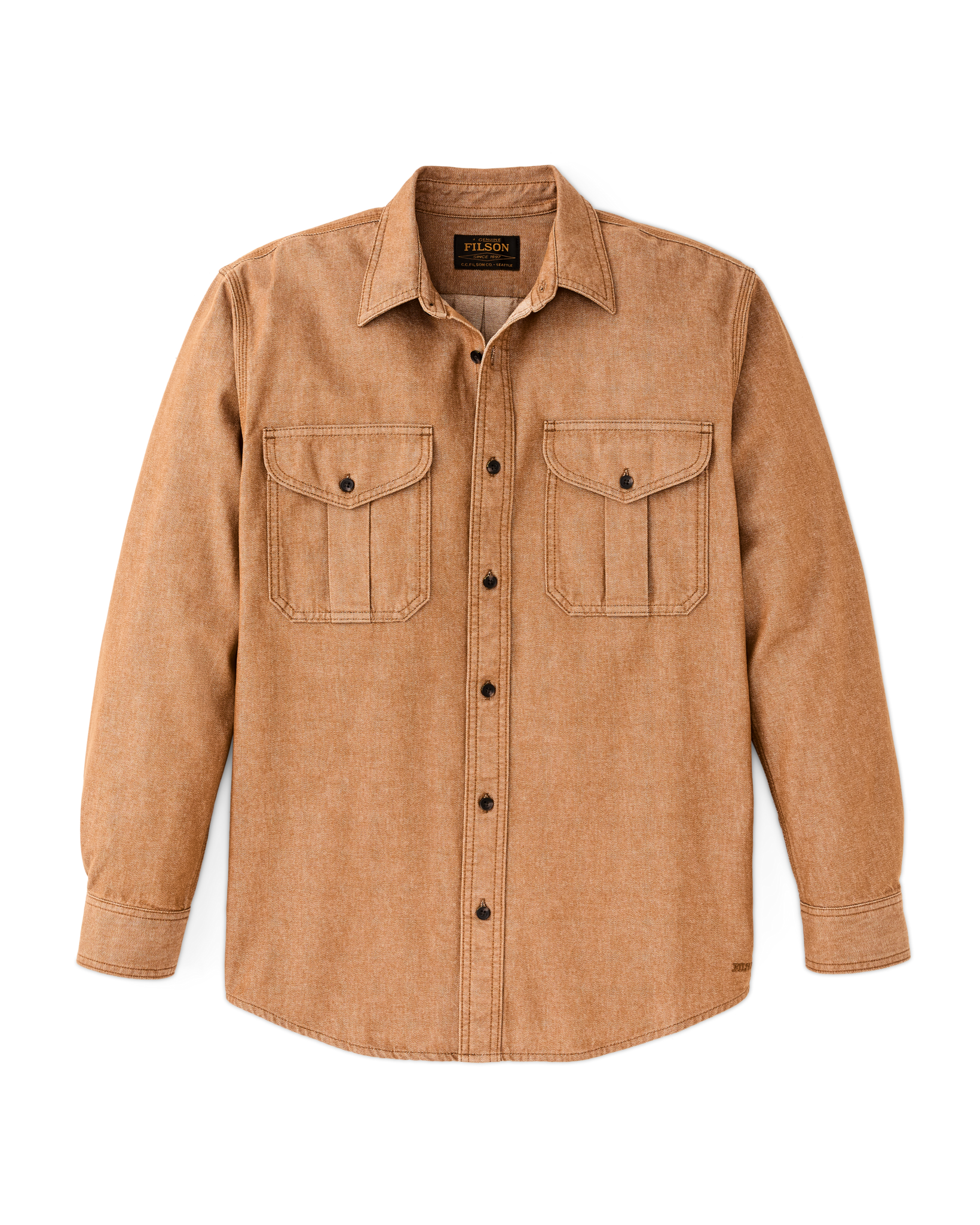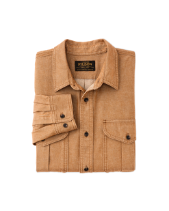 This durable classic is patterned after our iconic Alaskan Guide Shirt. a trusted favorite of bush pilots. ranchers. and sportsmen for thirty years. The 7.5-oz. fabric shares the same 2×1 warp-face twill weave as the strongest jeans. in a weight comfortable for a shirt. Like our original Guide Shirt. the fit is relaxed. with a center-back box pleat for ease of motion. Buttons secure the front. cuffs. and expandable chest pockets.