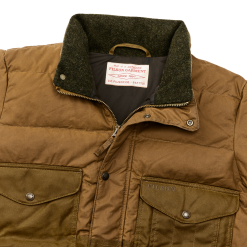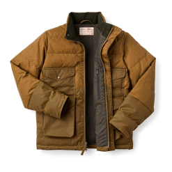 Customers have described our Down Cruiser as. like wearing a wood-burning stove. The shell is made with waxed-cotton Cover Cloth. with durable Shelter Cloth in higher-wear areas. Merino wool lines the collar . so your neck stays warm even in driving snow. The front pockets mirror our iconic Mackinaw Wool Cruiser. a design proven since 1914. The interior zippered pocket keeps a phone or valuables secure and quick-at-hand. Interior wool-blend. rib-knit cuffs seal in the warmth and provide a custom fit.