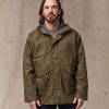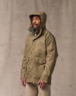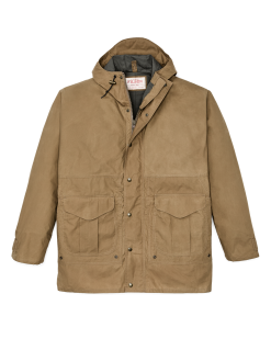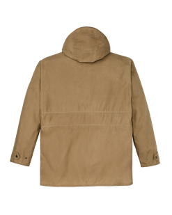 The caped shoulder construction minimizes seams exposed to the elements. The sleeves have double cuffs with snap-tabs to snug the exterior around an internal rib-knit cuff. The front zipper is protected by a snapped storm flap. An interior zipper accepts Filson liners. sold separately. The hood and waist are drawcord-adjustable for a custom fit. Combination hand/cargo pockets are protected by snapped flaps and gusseted for increased capacity.