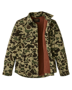 Our Fleece Lined Jac-Shirt bolsters a trusted Filson staple with insulation for colder weather. it’s built with sturdy 10-oz. cotton canvas for years of reliable service and lined with fleece in the body and polyfill in the arms. Garment-washed for a well-worn feel from the first wearing. Pleated shoulders for range of motion. Fleece-lined handwarmer pockets.