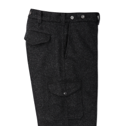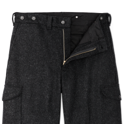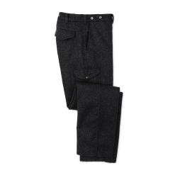 Our Mackinaw Wool Field Pants are a trusted favorite in cold. snowy conditions. Along with our Mackinaw Cruiser and Vest. they are approved field attire for U.S.F.S. personnel to this day. Wool’s silence in the woods. resistance to odors. and unique insulating ability in wet conditions make it a favorite of traditional hunters. Our Mackinaw Wool is made from the longest. sturdiest fleece fibers that are spun into thick. strong yarns. These yarns are tightly woven to our specifications into a twill fabric that is breathable. blocks the wind. and is highly durable. The cut is roomy through the seat and thighs for ease of moment. Flapped cargo pockets on the legs keep essentials or a phone close at hand. Zipper fly and metal wreath-button waistband. Metal wreath-buttons for attaching suspenders.