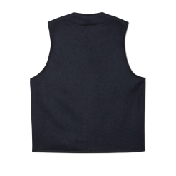 The design of the Mackinaw Wool Vest works just as well indoors. whether drawing up plans for your next big project or working in a chilly warehouse. The V-shaped neckline adds no bulk around the neck. so there’s still plenty of breathing room for a heavy shirt and a rain shell zipped chin-high. The front features open and slotted chest pockets plus side-entry hand pockets.