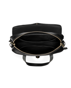 Made with our iconic Rugged Twill and Bridle Leather. the Filson Original Briefcase is built to survive any workplace. whether on land. at sea. or in the air. The lightly waxed fabric sheds water and withstands abrasion. year after year. The handles and detachable. adjustable shoulder strap are built with the same Bridle Leather that’s used for making horse tack. The roomy interior has organizational dividers and space for a 15 laptop and secures with a YKK solid brass zipper protected by a storm flap. A testament to our signature fabric’s durability. one customer recorded over one million miles of travel with his Original Briefcase.