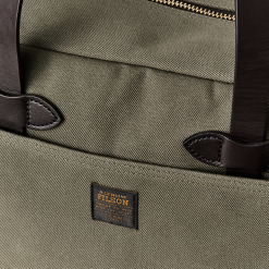 Our classic Tote Bag with Zipper. built with our signature. industrial-strength Rugged Twill and Bridle Leather. is the most versatile and useful bag you’ll find. The lightly waxed fabric is water resistant and withstands the rigors of daily carry. The handles. made from Wickett & Craig Bridle Leather. are long enough for over-shoulder carry. Pockets on all four sides to keep gear organized and close at hand. Solid brass YKK® zipper.