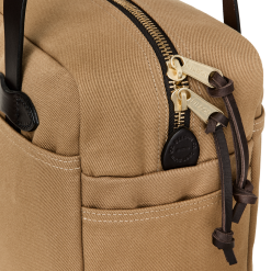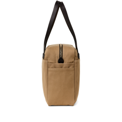 Our classic Tote Bag with Zipper. built with our signature. industrial-strength Rugged Twill and Bridle Leather. is the most versatile and useful bag you’ll find. The lightly waxed fabric is water resistant and withstands the rigors of daily carry. The handles. made from Wickett & Craig Bridle Leather. are long enough for over-shoulder carry. Pockets on all four sides to keep gear organized and close at hand. Solid brass YKK® zipper.