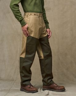 Introduced nearly thirty years ago. our Shelter Cloth Brush Pants have stood the test of time in the uplands. They’re made with our unwaxed Shelter Cloth. a tightly woven canvas with strength that belies its medium weight. The fronts and lower backs are reinforced with our signature waxed Shelter Cloth for water resistance and added durability. The fit is roomy through the seat and thighs for ease of motion during steep hikes or climbing over logs and rocks. Seven belt loops prevent sagging at the waistband. Flap-protected rear and angled-entry front pockets. Zippered fly and snapped waistband. Suspender buttons.