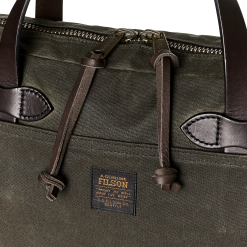 Our Tin Cloth Compact Briefcase is padded to protect a laptop or tablet up to 15. The front stow pocket extends the full width of the briefcase for carrying files. and the rear pocket snaps closed to secure contents. The main compartment’s heavy-gauge metal YKK zipper is built for a lifetime of service. The fabric is our signature Tin Cloth. a tightly woven duck canvas that’s been thoroughly saturated with liquefied wax under heat and pressure for maximum water resistance. Tin Cloth’s tight weave provides outstanding resistance to abrasion and punctures without excessive weight. The Bridle Leather handles are thick and strong for lasting service.. The interior is fully lined with cotton Cover Cloth. Detachable. adjustable webbing shoulder strap.
