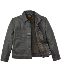 Our Short Lined Cruiser Jacket is made with Tin Cloth. our signature waxed cotton that has protected foresters and outdoorsmen from weather. brambles. and abrasion for a century. Its durable weather resistance is unequaled. Our waxed-cotton Tin Cloth from England’s historic British Millerain weighs 14 ounces per square yard. twice the weight of most imitators. Its uncommonly tight weave delivers outstanding tear strength and improved water resistance. Like heavy-duty denim. Tin Cloth breaks in and molds to the body’s contours and flex patterns.