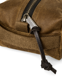Our Tin Cloth Travel Kit is a lighter-weight Dopp kit that carries travel essentials for a lifetime of journeys. It’s made with our iconic waxed canvas that’s protected foresters. sportsmen. and tradesmen from harsh weather. brush. and abrasion for more than a century. It’s fully lined with nylon to protect contents. and secures with a heavy-gauge metal YKK zipper. The cotton-webbing grab handle doubles as a loop for hanging. Bridle Leather zipper pull.