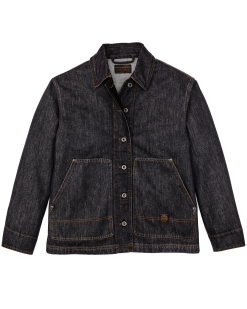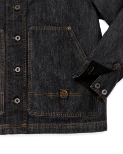 This classic jacket provides dependable outdoor protection from wind. brush. and brambles. Designed with straightforward simplicity. it works just as well for daily use. The high-quality denim will gain a timeworn. broken-in character with use. for decades of versatile wear. The collar. cuffs. and front placket are lined with our iconic Tin Cloth for durability. The relaxed fit is roomy. so if between sizes we recommend ordering the smaller size. Metal shank buttons for front closure and cuffs.