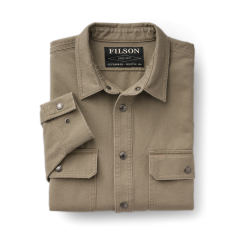 Our Canvas Work Shirt. built with sturdy 10-oz. 100% cotton. is built to withstand the abrasion and abuse that comes with hard work. The front closure. pocket flaps. and adjustable cuffs secure with virtually unbreakable snaps. and it’s garment washed for shrinkage control and a broken-in feel from the first wear. Embroidered logo at front hem.