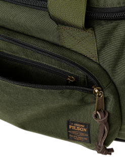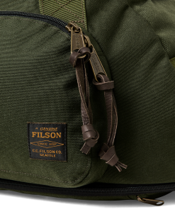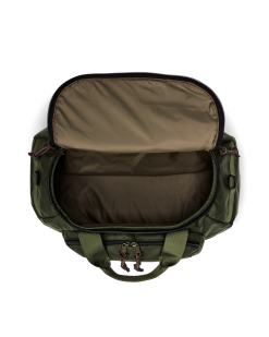 This all-purpose bag combines versatile utility and exceptional durability. The lightweight 1000-denier nylon fabric is woven with the same basketweave pattern as ballistic nylon. The U-shaped top zipper provides easy access to gear. A zippered exterior pocket with internal security pocket keeps essentials close at hand. A second exterior zipper accesses a bag that expands into the main compartment to keep wet or dirty gear separated from the rest of your load. Padded backpack straps can be stowed into the bottom sleeve to avoid snagging on other gear or in luggage compartments. The handles and detachable shoulder strap are made from strong. wide nylon webbing. Bridle Leather carry grip. Padded pocket for a laptop up to 16.