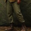 They’re cut roomy through the seat and thighs to ensure unrestricted ease of motion. featuring darts at the waist for a better fit. Front and rear pockets are protected by flaps to keep contents secure. the back right with a button and back left with a hidden snap. The large flap-covered cargo pockets on the leg sides are pleated for expandability. Inside the waistband is a hidden button-close security pocket.
