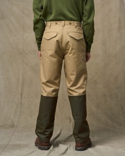 Introduced nearly thirty years ago. our Shelter Cloth Brush Pants have stood the test of time in the uplands. They’re made with our unwaxed Shelter Cloth. a tightly woven canvas with strength that belies its medium weight. The fronts and lower backs are reinforced with our signature waxed Shelter Cloth for water resistance and added durability. The fit is roomy through the seat and thighs for ease of motion during steep hikes or climbing over logs and rocks. Seven belt loops prevent sagging at the waistband. Flap-protected rear and angled-entry front pockets. Zippered fly and snapped waistband. Suspender buttons.