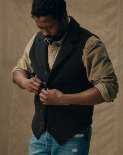 Our Mackinaw Wool Western Vest shrugs off wind and light rain while providing warm insulation. wet or dry. The notched lapels and pointed hem are a nod of respect to the bold pioneers who settled the West. Vests. known as waistcoats in Britain. were considered a requirement for proper attire in those days. The front pockets were sized and located for quick access to timepieces. Those same features that made the vest an indispensable garment on the range make our Western Vest a companion no matter where your journey leads.