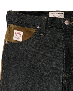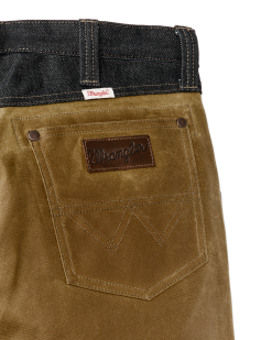 These authentic work jeans are made for tough jobs and wet conditions. They’re made with Wrangler’s rugged. time-proven 14.5-oz denim and reinforced with our Tin Cloth for water resistance and added durability. The reinforcements combine design elements of our iconic Double Tin and Brush Pants–the seat. rear hems. leg fronts all double-layered with our signature waxed canvas. The fit is relaxed with a gusseted crotch for comfortable ease of motion. A seventh belt loop in the back center prevents waistband sagging. Open-stow and flap-covered rear pockets. Zipper fly.